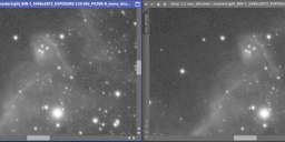 What is immediately noticeable is that the drizzled master seems to show more contrast, sitting about halfway between the non-drizzled master and the non-drizzled master binned by 2 (not shown). So by simply drizzling by a scale factor of 1, do I get better signal to noise ratio, but not the downside of loss of resolution I would get by binning? The noise also seems to go up slightly, but that seems manageable in the days of NoiseXTerminator etc.